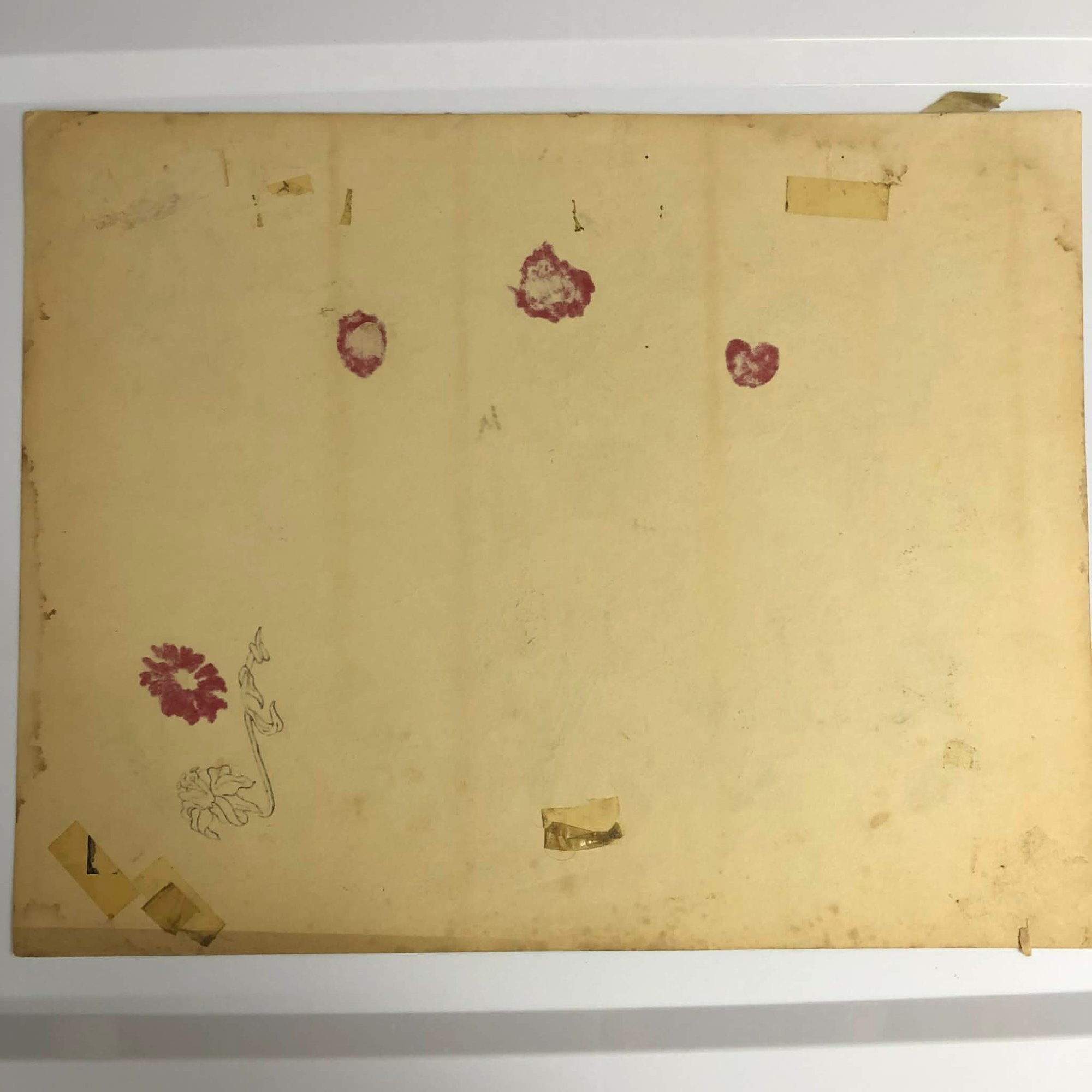 Stains, pinholes, yellowing, creases, tape. Displays nicely
