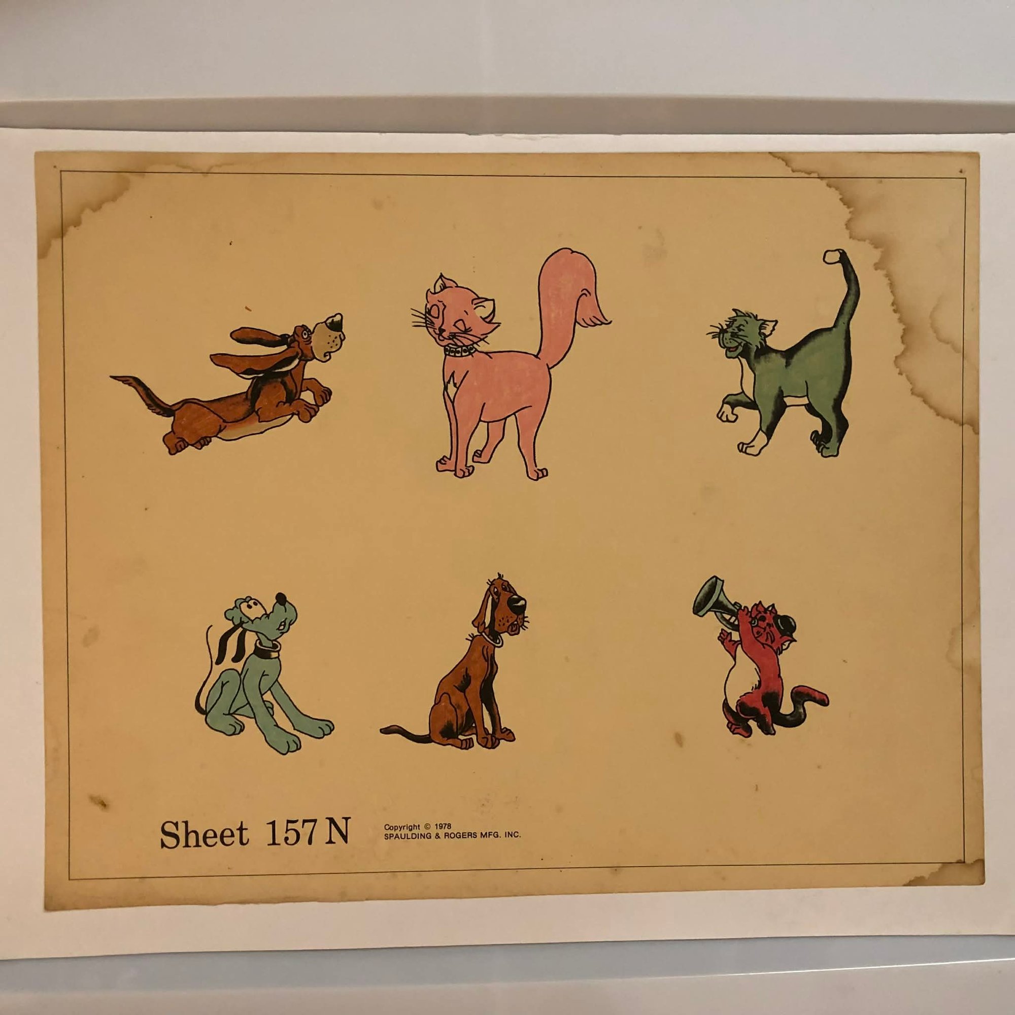 1976 hand colored Spaulding & Roger’s production sheet toon cats dogs 11x14