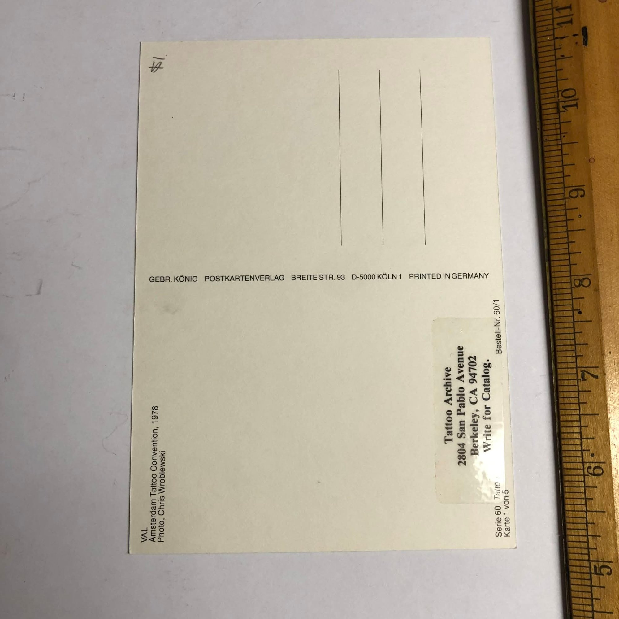 1978 Amsterdam Tattoo Convention postcard with Tattoo Archive sticker