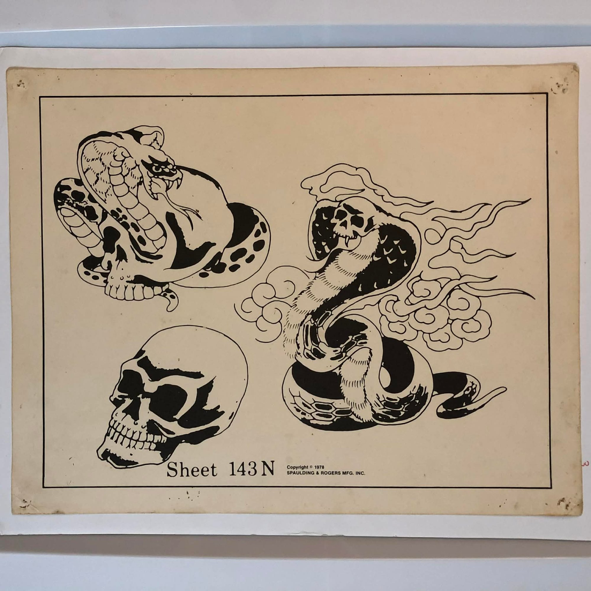1978 Spaulding & Roger’s production flash sheet skull snakes 11x14