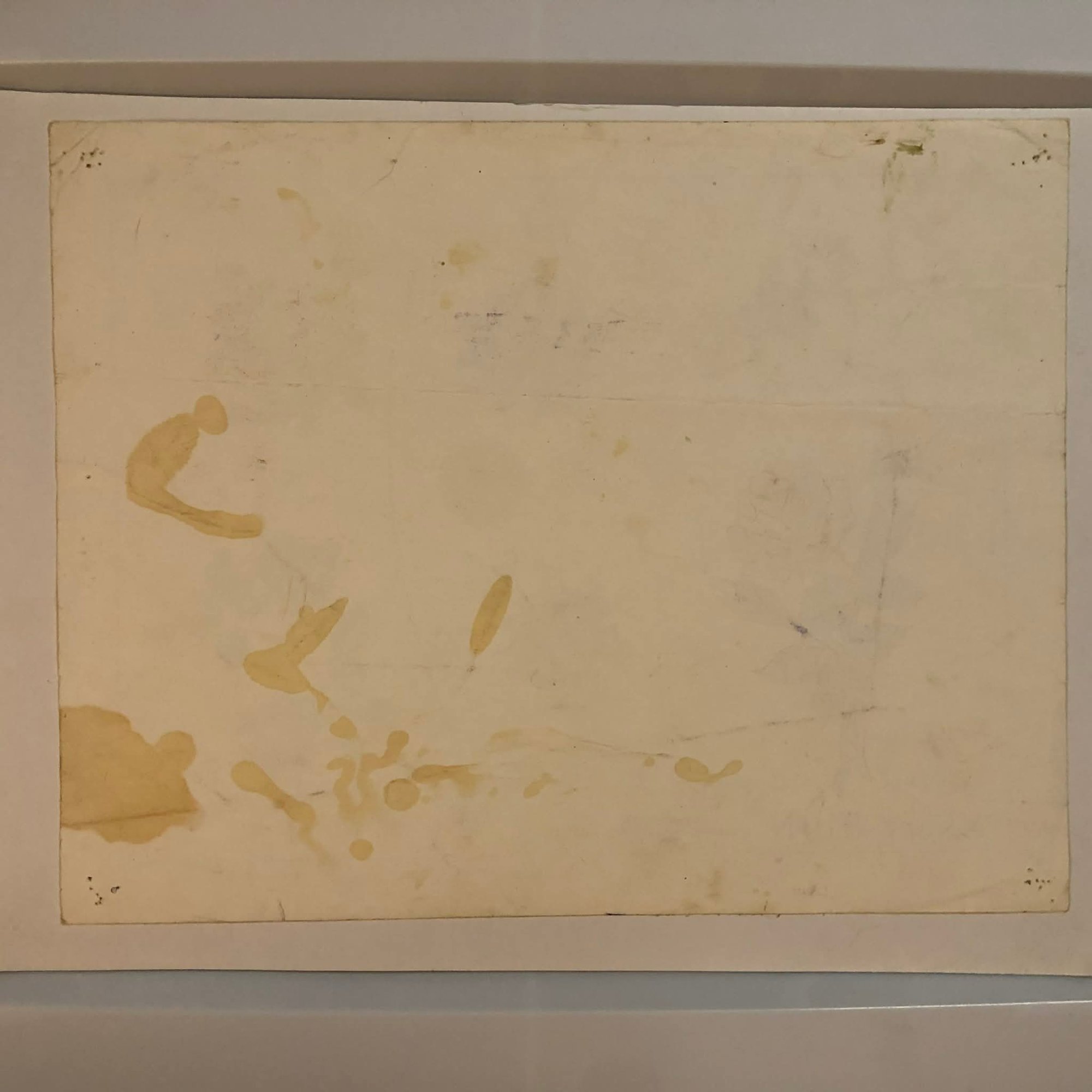 Yellowing, staining, paint and ink markers, pinholes.