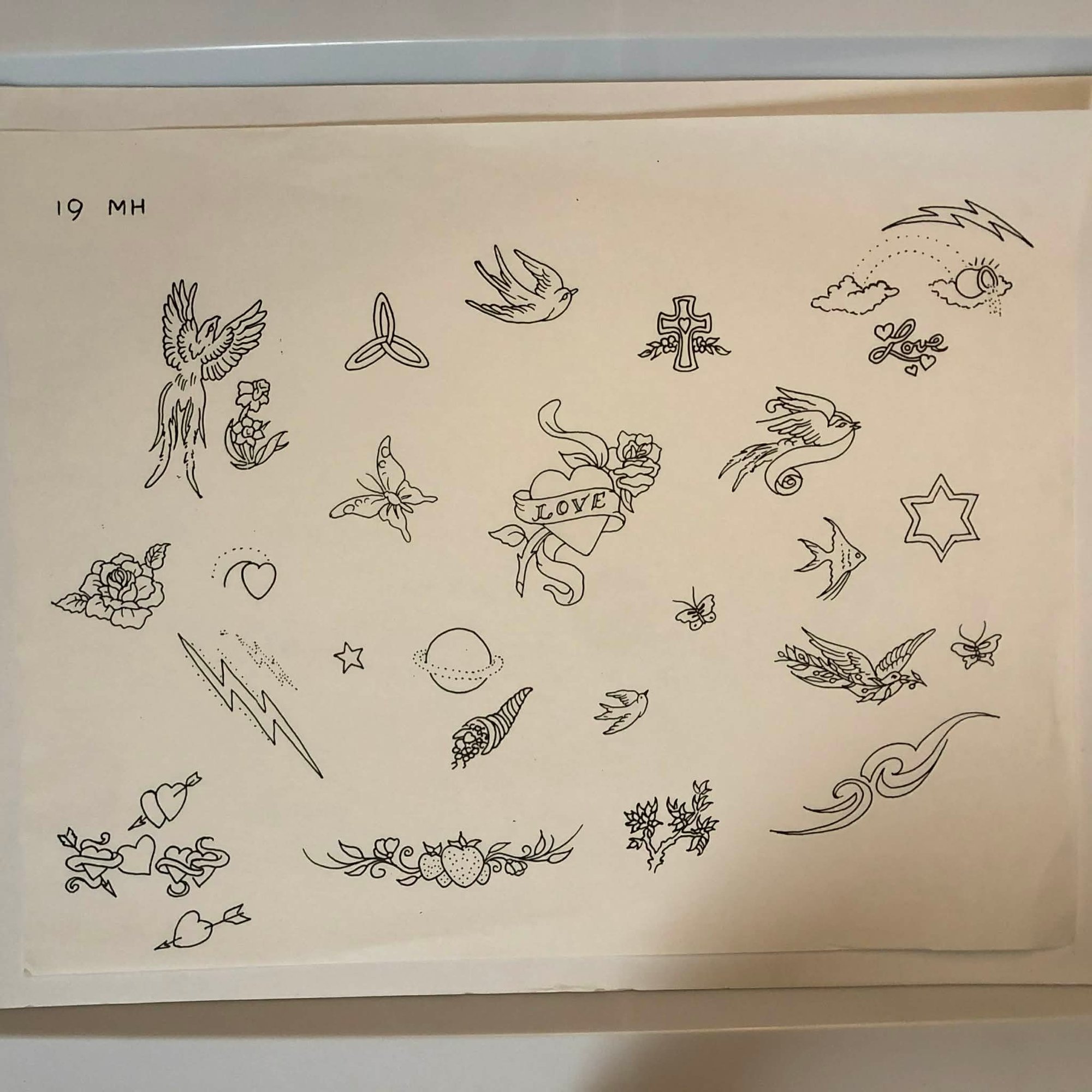 1990 Marty Holcomb production flash sheet with line drawings 19-mh