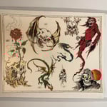 1990’s Skulls tattoo flash sheet laminated, 11x14
