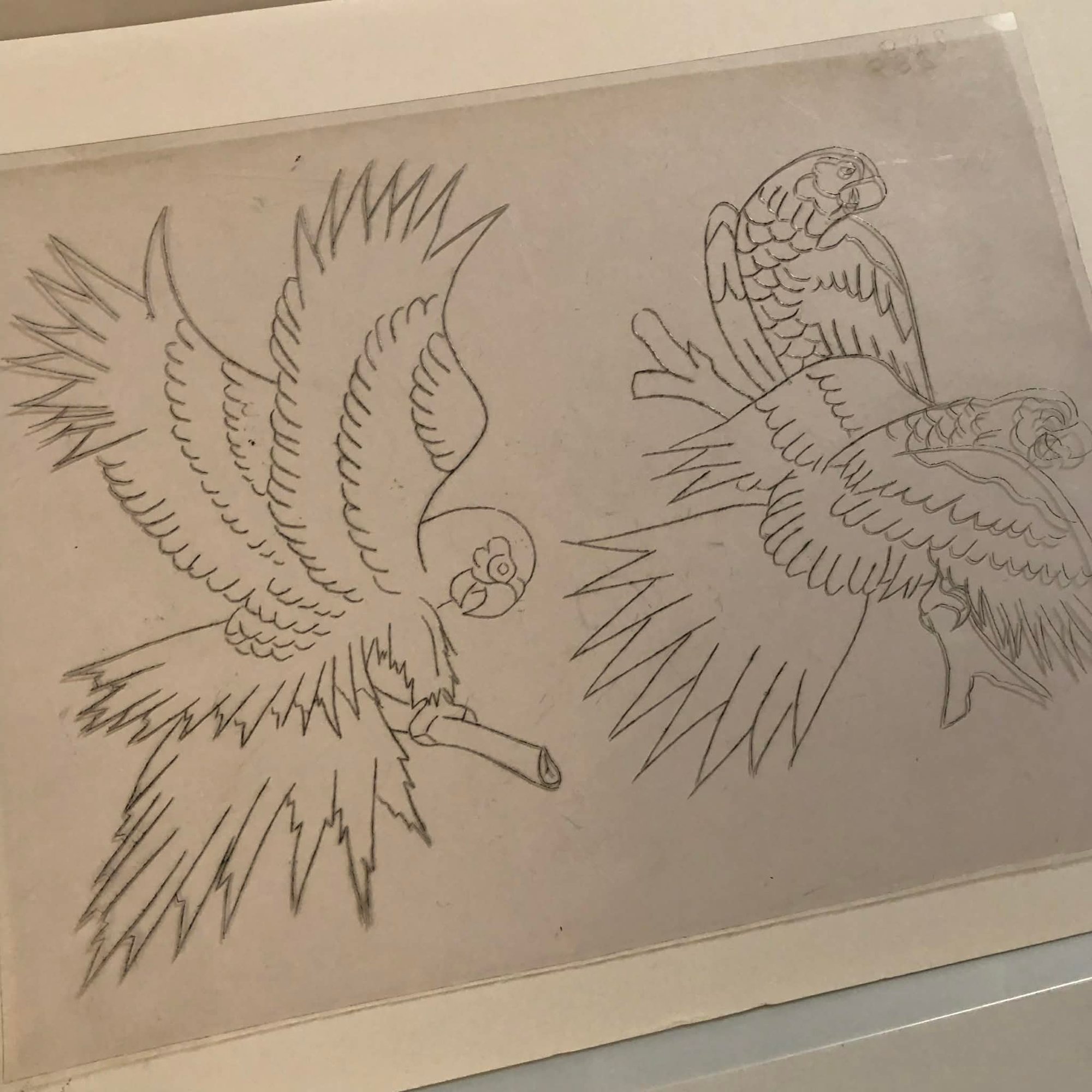 90’s hand cut acetate parrot sheet 10x12