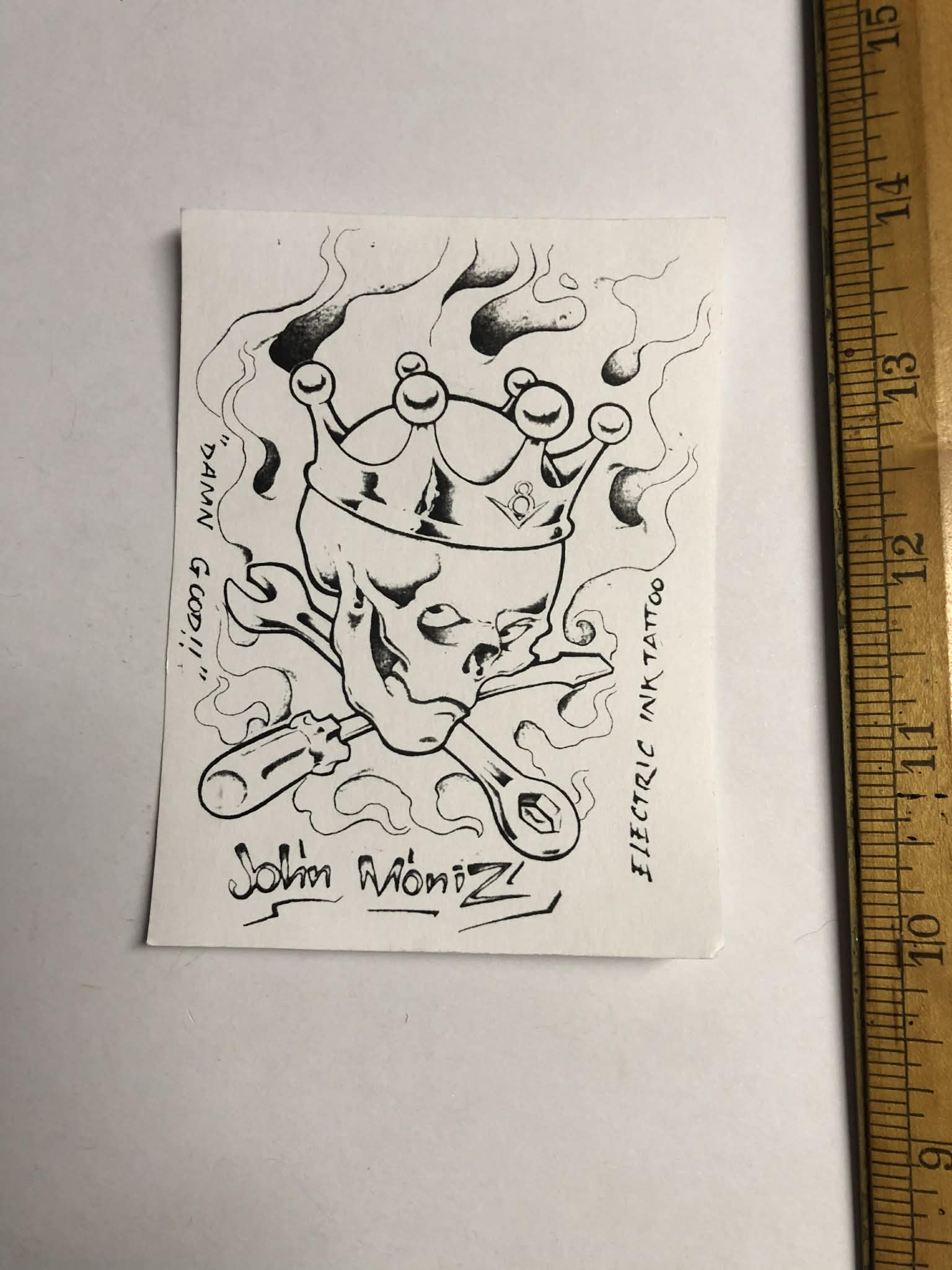 Business card from John Moniz Electric Ink Tattoo 90’s