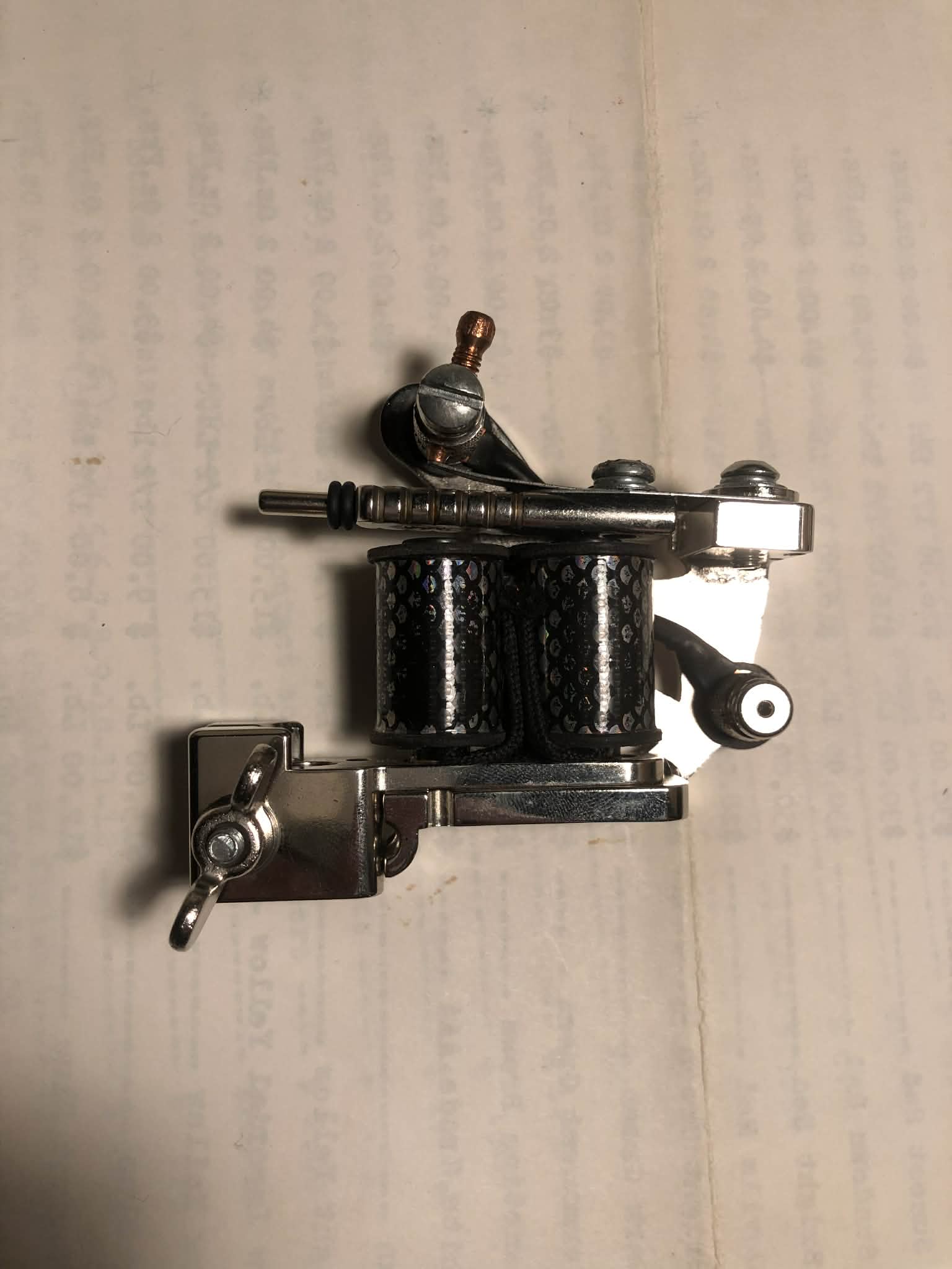 Runs great. JR1 Liner Tattoo machine built with The Gavel vice grip from AMR