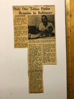 Newspaper clipping featuring the last tattoo shop in Baltimore, 1971