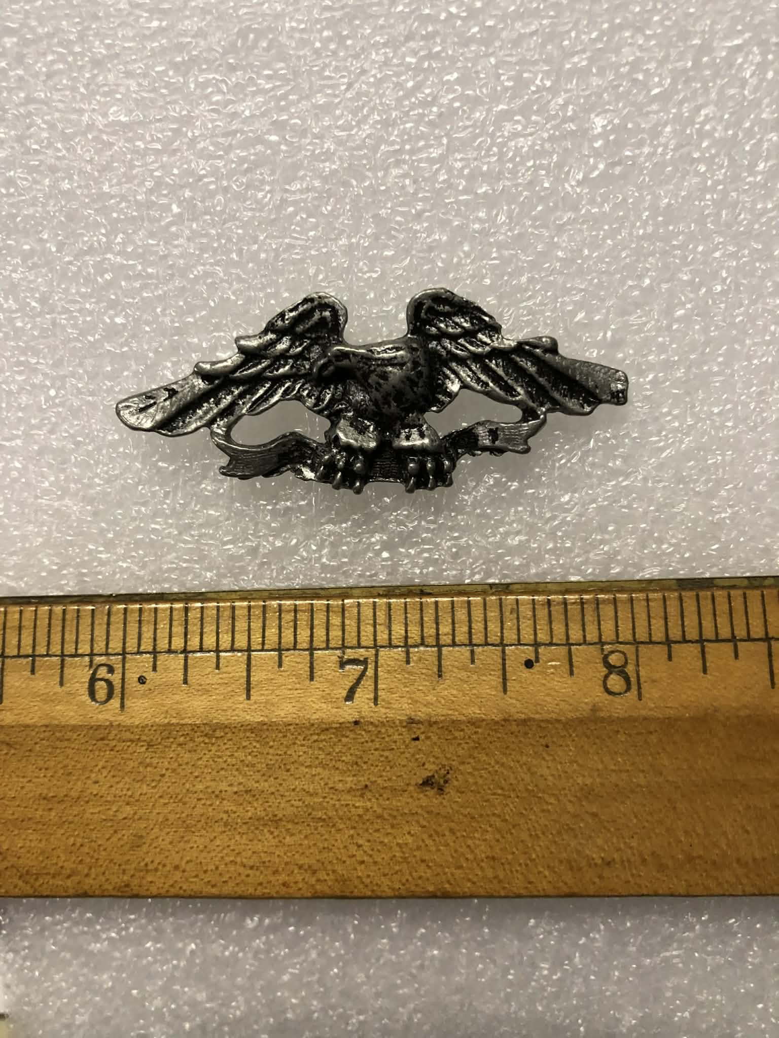 Vintage pewter biker pin eagle banner